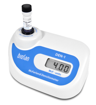Densitometer is designed for measurement of cell suspension’s turbidity in the range of 0.0–6.0 McFarland units (0 – 180×107 cells/ml). Powered both from external energy supply and from batteries (АА).