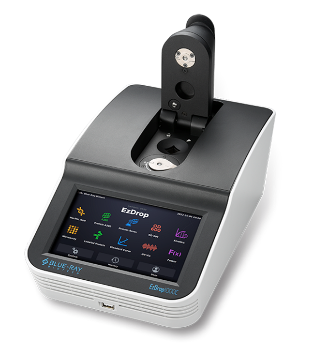 EzDrop 1000C Micro-Volume/Cuvette Spectrophotometer helps you make the most of your precious sample and time, providing measurement results within 3 seconds. The instrument offers dual modes for micro-volume and cuvette detection, as well as an intuitive touch screen for easy operation. These features combine to meet a wide range of nucleic acid and protein quantification requirements. EzDrop 1000C can be used as a standalone unit or connected to a PC for increased flexibility in the sample-to-data process.
